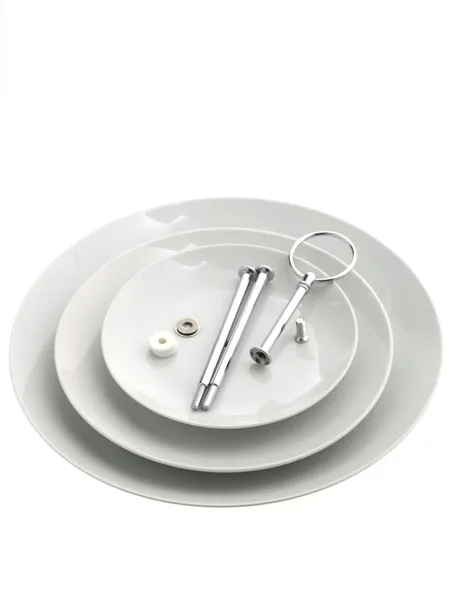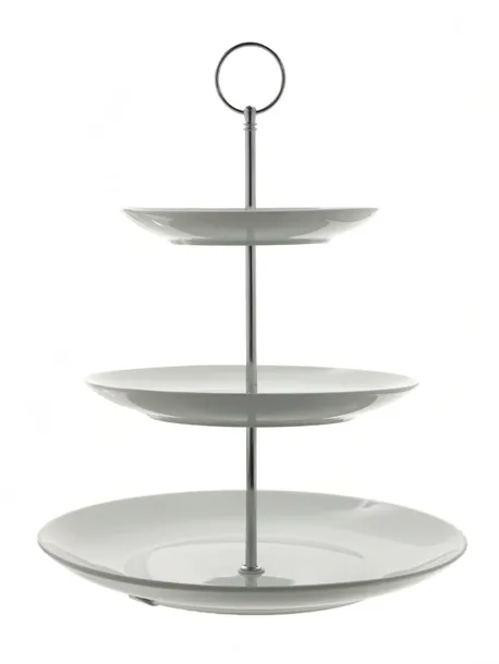 Trzypoziomowa patera wykonana z porcelany. Klasyka i elegancja w jednym. Elegancka patera do ekspozycji deserów i przekąsek . Drobne niedoskonałości są naturalnym efektem powstałym podczas procesu produkcji.