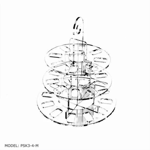 Patera piętrowa z plexi 4mm, składana mobilna na makaroniki ciastka, muffiny, babeczki i inne lub Stojak, ekspozytor na drobne przedmioty z otworami