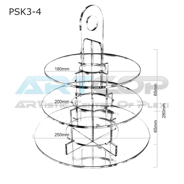 3 poziomowa o wysokości 28cm z plexi 4mm, wersja STANDARD.