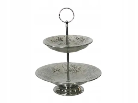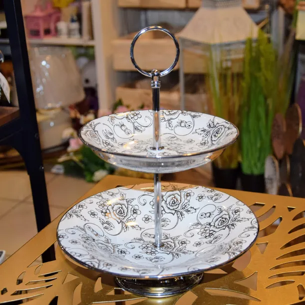 Klasyczna patera zdobiona subtelnym kwiecistym wzorem, można ją wykorzystać do ciast jak i małych słodkości.