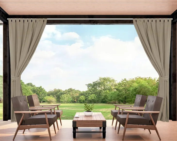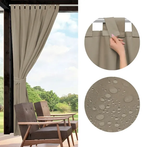 Zasłona ogrodowa wodoodporna 155x220 cm CIEMNY BEŻ zasłony na taras altanę
