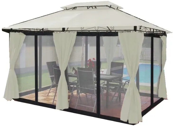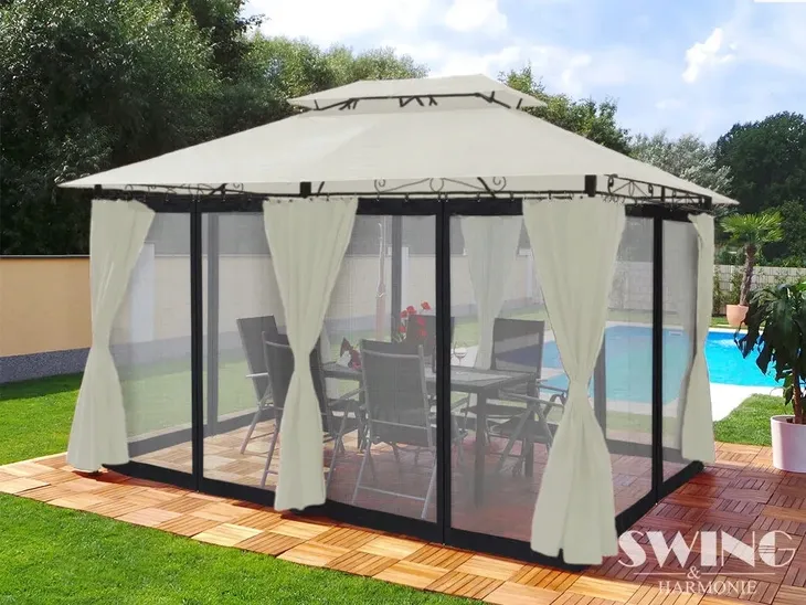 Pawilon MINZO LED 3x4m Namiot Imprezowy Ogrodowy Moskitiera LED KREMOWY
