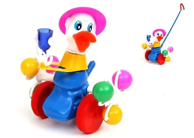 KACZOR Z DZWONKIEM to zabawka do pchania wykonana z atestowanego i bezpiecznego dla dziecka tworzywa oraz w ciekawej i atrakcyjnej kolorystyce.