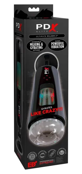 Wibruje, obraca się i doje jeszcze bardziej szaleńczo i intensywnie!Ultimate Milker 2 masturbator od PDX Elite, który rozpieszcza penisa dookoła dzięki intensywnym wibracjom (10 trybów) i potężnej funkcji spiralnego doju (7 trybów) - wszystko za naciśnięciem przycisku. Okienko podglądu podświetlane diodami LED pozwala na ekscytujące oglądanie wszystkiego. Dodatkowo seksowne, pełne oddechu jęki podkreślają prawdziwe doznania, którymi możesz się dyskretnie delektować dzięki dołączonym słuchawkom.Rozciągliwy, miękki wewnętrzny rękaw o fakturze przypominającej skórę wyposażony jest w niezliczoną ilość miękkich wypustek, które intensywnie masują penisa. Pokrowiec jest zdejmowany w celu łatwego czyszczenia. Masturbator może być przechowywany (kurz) bezpiecznie i dyskretnie dzięki dołączonej nakładce ochronnej.W zestawie znajduje się również mocna przyssawkowa podstawa, dzięki której masturbator można mocno zablokować na każdej gładkiej powierzchni i regulować jego kąt nachylenia. Dzięki temu masturbator może być używany również bez użycia rąk.Możliwość ładowania - w zestawie kabel do ładowania Magnetic Charger.Długość całkowita 27 cm, głębokość wprowadzenia 12,7 cm, średnica zewnętrzna 8,4 cm, średnica wewnętrzna 1,5 cm - 5,1 cm.ABS, TPE.