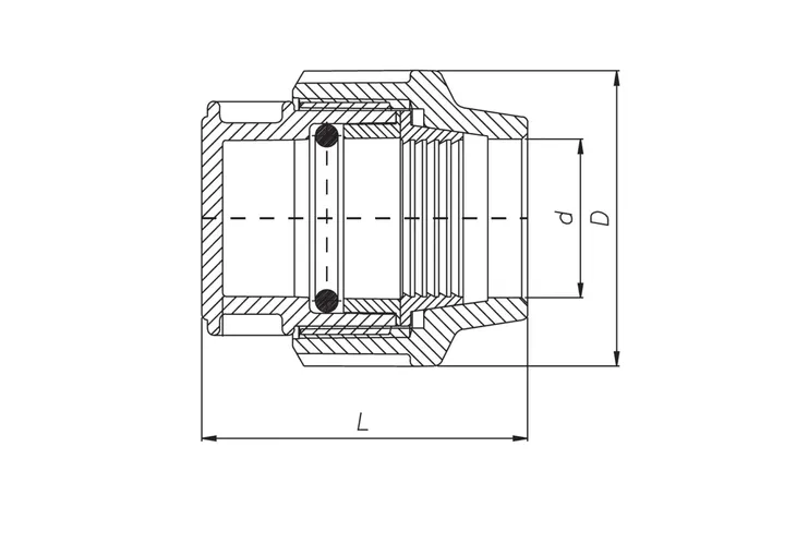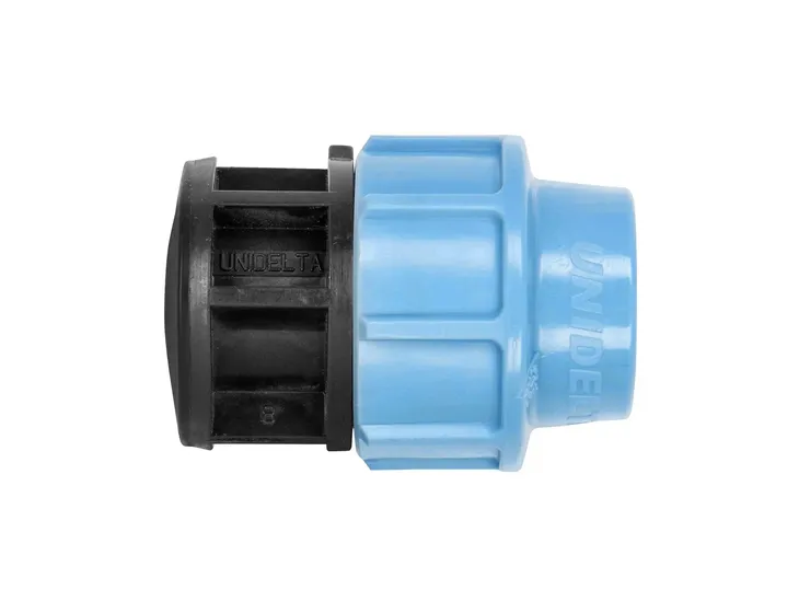 Złączki składaja się z korpusu barwy czarnej, nakrętki barwy niebieskiej, uszczelki typu o-ring oraz pierścieni: dociskowego barwy czarnej oraz zaciskowego barwy białej.