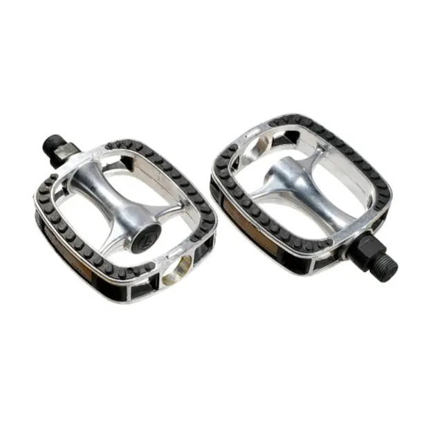 Aluminiowe pedały do rowerów typu CROSS, TREKKING, CITY. Wyposażone w aluminiowy korpus z antypoślizgową gumą, zapewniają stabilność i bezpieczeństwo podczas jazdy. Stalowa oś oraz łożyska kulkowe gwarantują płynność obrotu i trwałość nawet przy intensywnym użytkowaniu. Duża powierzchnia platformy zwiększa komfort pedałowania, zwłaszcza podczas jazdy miejskiej i turystycznej.
