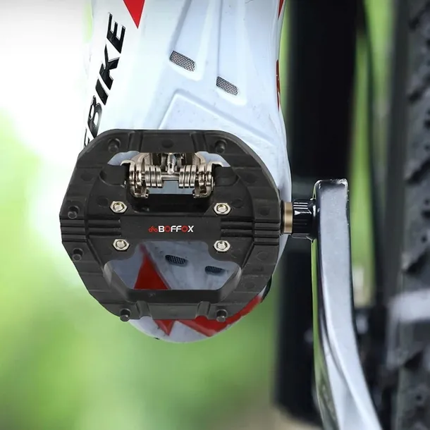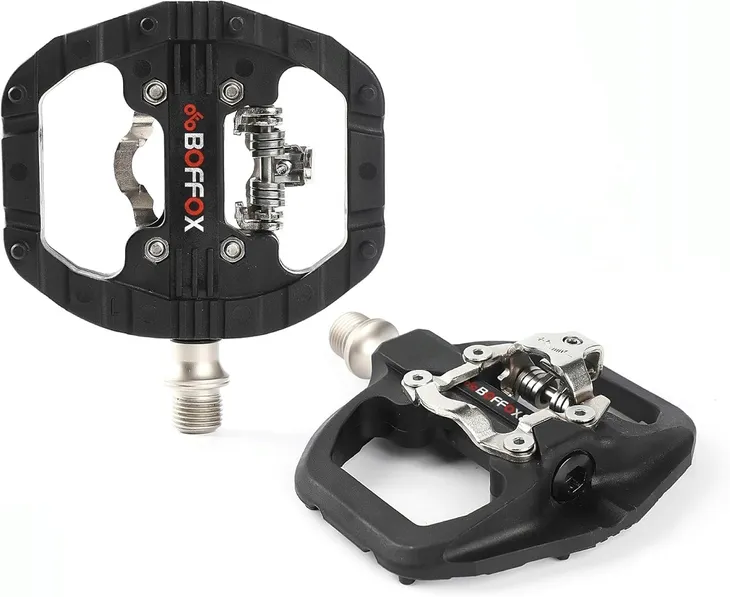 - Unikalna konstrukcja: wielofunkcyjne pedały do rowerów górskich. Ten pedał rowerowy ma tradycyjną platformę po jednej stronie i pedał zatrzaskowy po drugiej, które można łączyć z butami rowerowymi SPD lub butami rekreacyjnymi, co zapewnia wiele opcji.