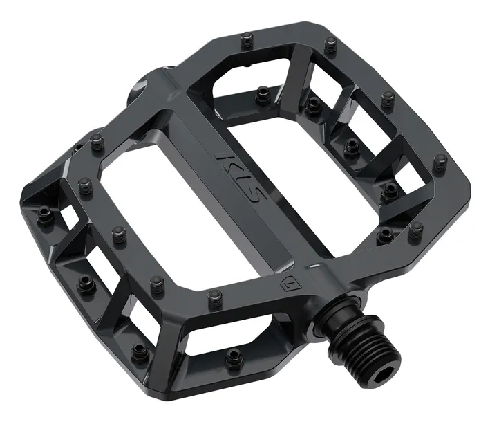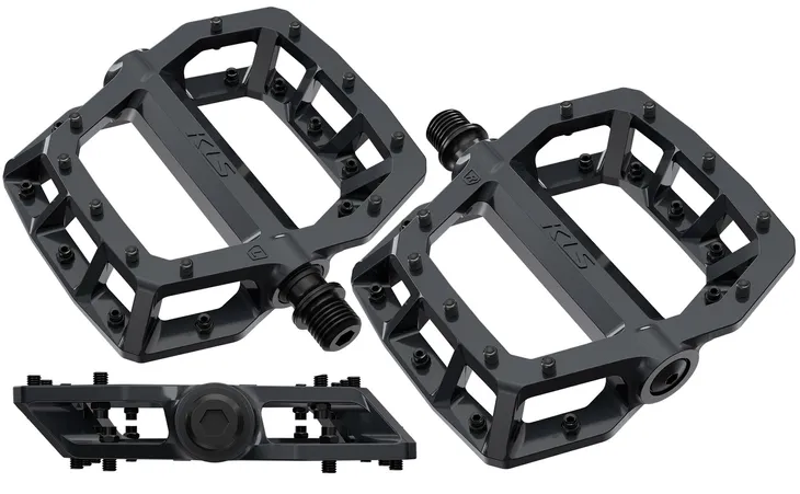 Pedały platformowe KLS FLAT 50 023 mają ergonomiczny kształt, który zapewnia dobrą przyczepność i jednocześnie minimalizuje wagę korpusu pedału. Korpus pedału jest odlewany ciśnieniowo ze stopu aluminium, dzięki czemu jest wytrzymały i stosunkowo lekki. Obrabiana CNC oś Cr-Mo w połączeniu z łożyskami 2DU zapewnia płynną pracę nawet w najtrudniejszych warunkach i długą żywotność. Wklęsły korpus z 10 pinami umieszczonymi z każdej strony pedału zapewnia przyczepność nawet w najostrzejszych zakrętach lub podczas jazdy w parkach rowerowych i najtrudniejszych trasach.