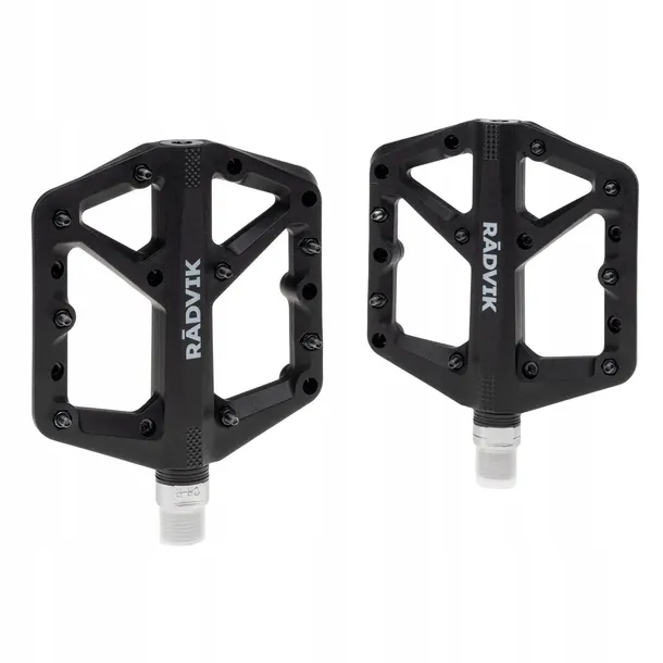 Pedały platformowe NYLLE marki Radvik o przeznaczeniu MTB oraz Enduro. Wykonane zostały z wysokiej jakości aluminium poddanego obróbce CNC. Posiada po 8 wkręcanych pinów na każdą stronę, które dają dobrą przyczepność. Uszczelniane łożyska zwiększają ochronę przed warunkami atmosferycznymi.