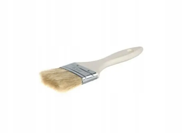 Pędzel angielski płaski do malowania farbami olejnymi, lakierami i emulsjami. Uchwyt drewniany nielakierowany z metalową ocynkowaną skuwką.