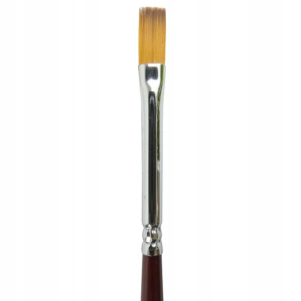 Włosie syntetyczne jest gęste, elastyczne i trwałe – idealnie rozprowadza farbę, nie tracąc kształtu nawet przy intensywnym użytkowaniu. Dzięki płaskiej główce łatwo uzyskasz zarówno cienkie linie, jak i szersze plamy koloru. Sprawdzi się przy farbach akrylowych i olejnych, więc masz pełną dowolność twórczą.
