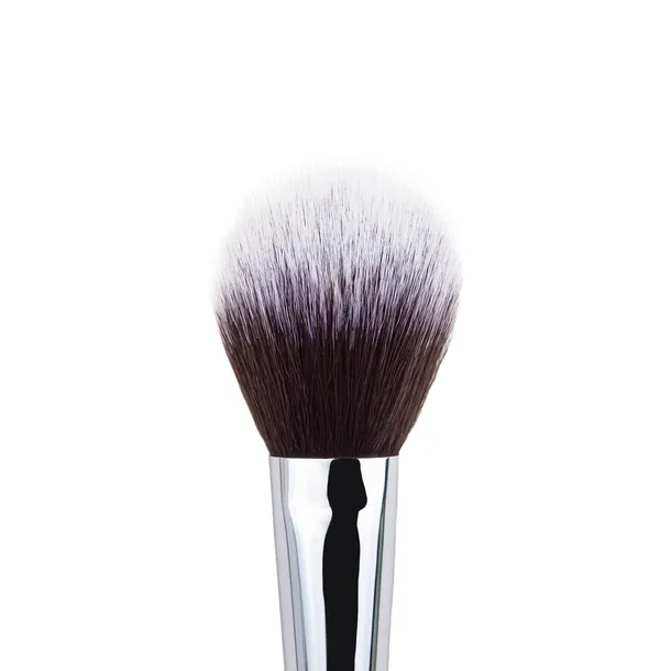 Pędzel przeznaczony do rozprowadzania wszelkich kosmetyków sypkich, prasowanych lub w kamieniu. Syntetyczne odbarwiane włosie jest łatwe w utrzymaniu czystości i użytkowaniu. Sprawdzi się zarówno u profesjonalistów jak i osób początkujących. Drewniana rączka, malowana na czarno wraz ze srebrną skuwką tworzą estetyczną całość. Gęste i miękkie włosie nie odkształca się podczas czyszczenia. Pędzel dobrze radzi sobie z równomiernym rozprowadzeniem kosmetyków, nie pozostawia nieestetycznych smug, pozwala kontrolować ilość nakładanego produktu i sprawi, że puder będzie dłużej utrzymywał się na twarzy oraz będzie wyglądał bardziej naturalnie.