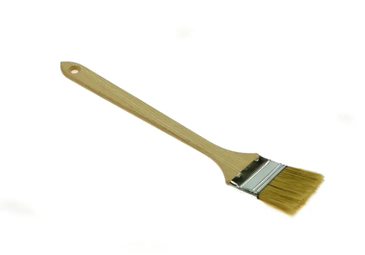 PĘDZEL NA DŁUGIM TRZONIE DREWNIANYM, ZAKRZYWIONY POD NIEWIELKIM KĄTEM W CZĘŚCI ROBOCZEJ W CELU UŁATWIENIA MALOWANIA W MIEJSCACH TRUDNO DOSTĘPNYCH. WYKONANY Z WŁOSIA NATURALNEGO.