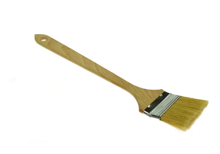 PĘDZEL NA DŁUGIM TRZONIE DREWNIANYM, ZAKRZYWIONY POD NIEWIELKIM KĄTEM W CZĘŚCI ROBOCZEJ W CELU UŁATWIENIA MALOWANIA W MIEJSCACH TRUDNO DOSTĘPNYCH. WYKONANY Z WŁOSIA NATURALNEGO.