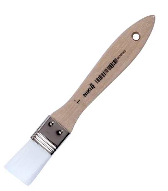 - Płaski pędzel, którego trzon wykonany jest z naturalnego drewna, lakierowanego przezroczystym matowym lakierem UV