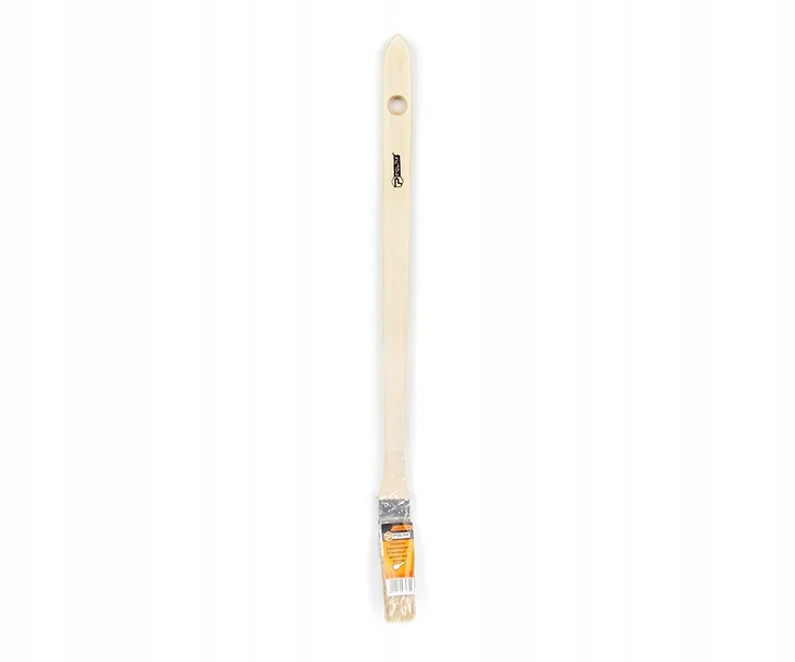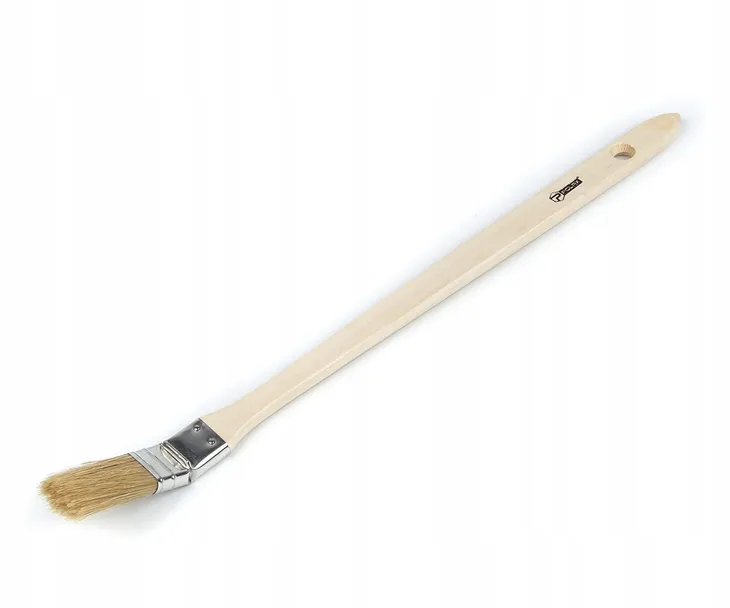 Drewniana rączka pędzla ma kątowe wygięcie i szlifowaną powierzchnię, co pozwala na wygodne trzymanie go w ręku oraz ułatwia malowanie powierzchni w rogach i za kaloryferami.