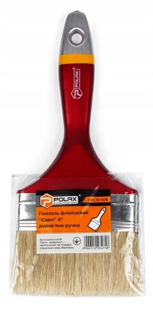 Pędzel płaski malarski "EURO" 100mm marki POLAX wykonany jest z włosia mieszanego (30% włosia sztucznego i 70% włosia naturalnego)