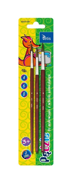 PĘDZLE OKRĄGŁE, BLISTER 3 SZTUKI,ROZMIARY: 4, 6,8, TETIS