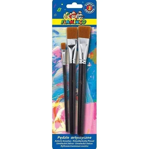 Zestaw 3 pędzli z drewnianym uchwytem płaskie nr: 0,5, 1, 11/2