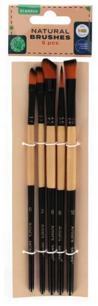Kompletny zestaw 5 zróżnicowanych pędzli wysokiej jakości z kolekcji STARPAK dedykowanej szkole. W zestawie znajdują się pędzle o końcówkach w szpic oraz płaskie w różnych rozmiarach. Umożliwiają one uzyskanie różnorodnych efektów malarskich. Idealnie sprawdzą się do malowania cienkich i precyzyjnych kresek. Pędzle będą inspiracją dla młodych, ambitnych twórców.Zapoznaj się również z innymi produktami Starpak.