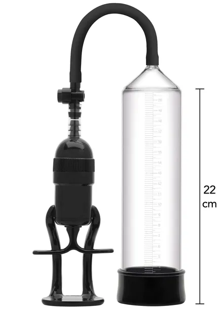 Advanced Penis Pump to idealne narzędzie, jeśli marzysz o zwiększeniu długości i objętości swojego członka. Wystarczy umieścić penisa w tubie, przyłożyć szczelnie do ciała i zacząć pompować za pomocą ergonomicznej pompki w kształcie litery T. Skala pomiarowa na cylindrze pozwala na bieżąco śledzić efekty.