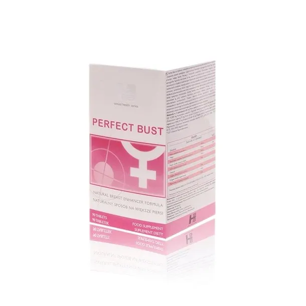 Perfect Bust - 90 kapsułekEkstrakt z owoców palmy sabałowej (serenoa repens) [25% kwasów tłuszczowych]; otoczka kapsułki - żelatyna; ekstrakt z nasion kozieradki pospolitej (Trigonella foenum-graecum) [25% saponin]; ekstrakt z nasion kopru włoskiego (Foeniculum vulgare Mill.); ekstrakt z liści lucerny siewnej (Medicago sativa L.); sproszkowane
