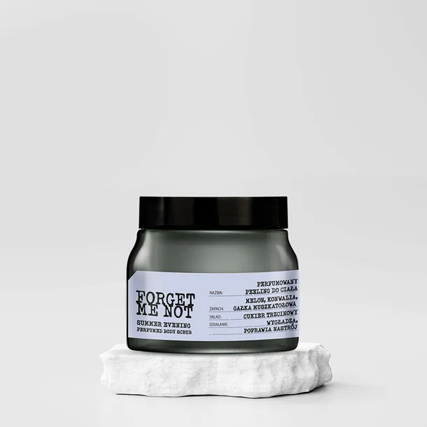 Przeznaczenie: Summer Evening z linii Forget Me Not to niezapomniane, świeże nuty beztroskiej radości, emocje i piękne wspomnienia. Poznaj naturalny, stworzony z pasją, perfumowany peeling do ciała o właściwościach wygładzających, który zapewnia holistyczną pielęgnację i poprawia nastrój. Jego unikalna, niezwykle bogata formuła zawiera złotą perłę, cukier trzcinowy, ekstrakt z szafranu i olejek rozmarynowy. Nuty zapachowe: melon, konwalia, gałka muszkatołowa. Atuty: 100% vege 94% składników pochodzenia naturalnego. Motto: To właśnie Twoja chwila relaksu. Teraz Ty jesteś najważniejsza! Oddaj się wspomnieniom i marzeniom... Ciesz się pięknym zapachem i dbaj o siebie.