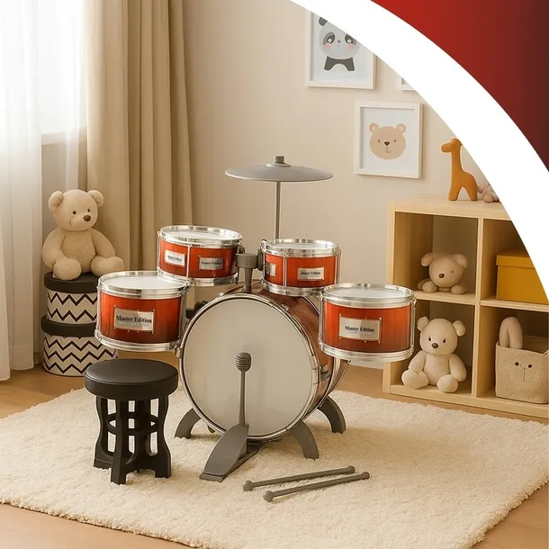 Perkusja dla Dzieci – Zestaw 5 Bębnów + Talerz + Krzesełko