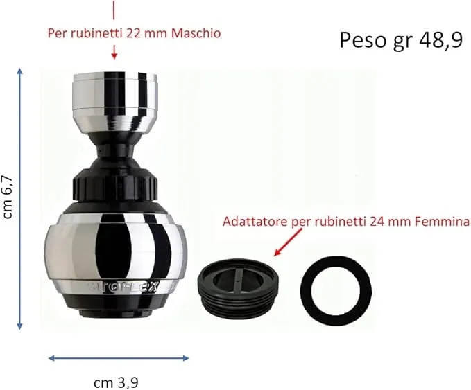 - ⭐ UNIWERSALNE PRZYŁĄCZE: Pasuje do kranów ze standardowym przyłączem 22 mm (gwint zewnętrzny) lub 24 mm (gwint wewnętrzny).