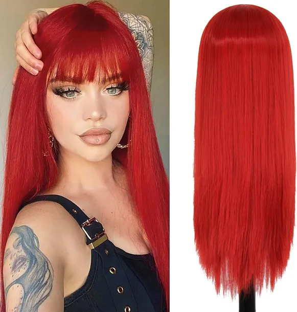 Peruki kostium kobiety z maską, krótka, czerwona peruka Cosplay peruka z grzywką na imprezę, Cosplay, Halloween, AL026B