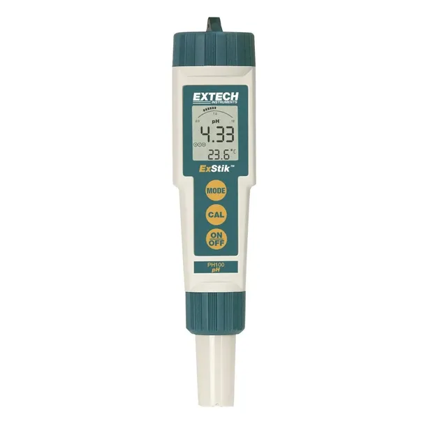Wytrzymały i wodoszczelny (IP57) miernik do pH. Dzięki płaskiej, wymiennej elektrodzie pomiarowej pomiar możliwy jest nawet przy niskich poziomach cieczy oraz na powierzchni.