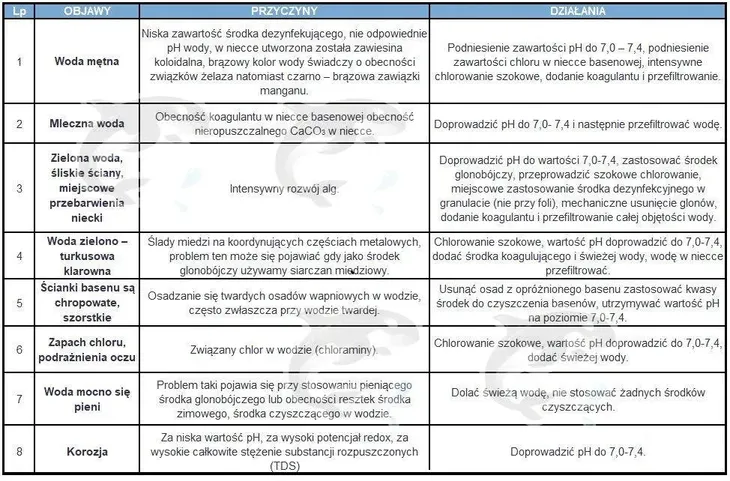 - warunkiem skutecznej dezynfekcji i uzyskania dobrej jakości wody jest utrzymywanie wartości pH w zakresie 7,0 – 7,4