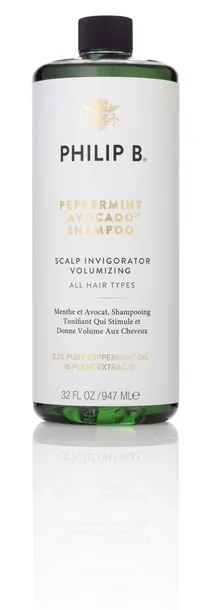 Philip B Peppermint & Avocado Shampoo is a luxurious, clarifying shampoo designed to invigorate the scalp and provide a deep cleanse without stripping essential moisture. Infused with 2.3% pure peppermint oil and 16 plant extracts, it delivers a refreshing, tingly sensation while promoting healthy circulation. Avocado oil nourishes and hydrates, leaving hair soft, shiny, and full of body.Amazon+1Philip B. UK+1