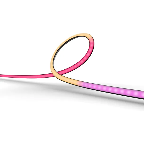 Taśma oświetleniowa Philips Hue Gradient PC z funkcją cieniowania barw wymaga aplikacji mobilnej Hue Sync oraz mostka Hue Bridge. Mostek pozwala także dodać maksymalnie 50 punktów świetlnych i akcesoriów w całym domu, tworzyć liczniki i harmonogramy oraz sterować światłem z dowolnego miejsca — ze środka domu, jak i poza nim — za pomocą aplikacji Hue. Urządzenie Philips Hue Play HDMI sync box i mostek Hue Bridge są sprzedawane oddzielnie.