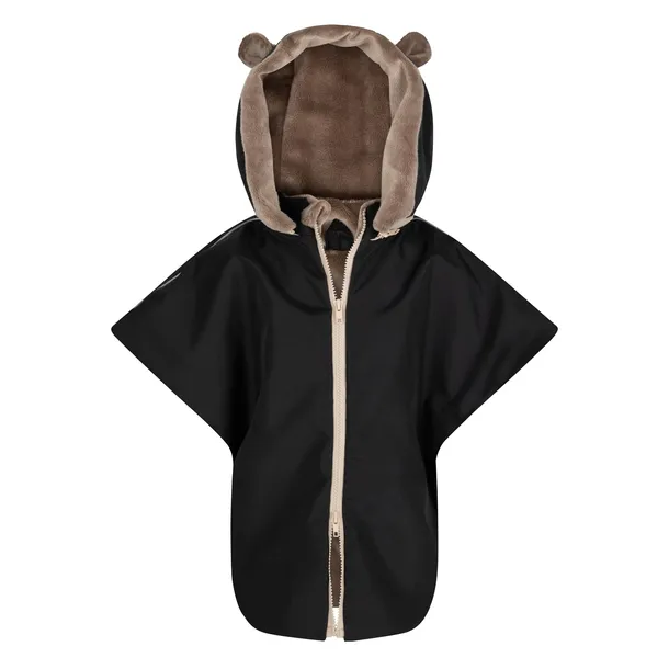 - Wodoodporna zewnętrzna warstwa, która chroni dziecko przed deszczem, śniegiem, wiatrem. Środek poncza wykonany z miękkiego i ciepłego futerka.