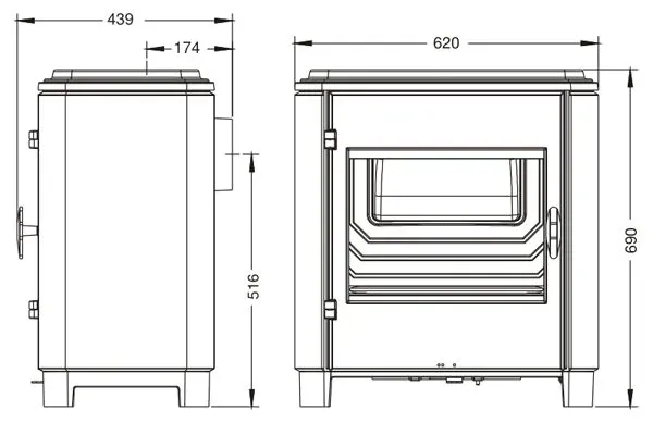 - średnica wylotu spalin: 150 mm