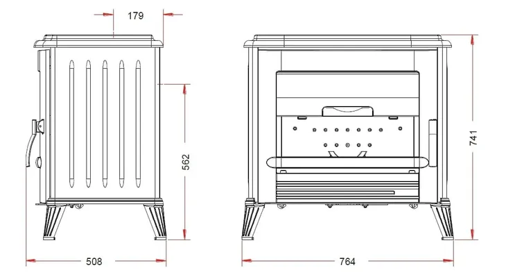 Osadzony na czterech nóżkach korpus wykonano w całości z żeliwa, które jest idealnym materiałem do produkcji urządzeń grzewczych z uwagi na swoją twardość, odporność na korozję, wysokie temperatury, doskonałą przewodność termiczną, elastyczność stopu, która pozwala otrzymywać odlewy o bardzo gładkiej powierzchni oraz 100% przystosowanie do recyclingu.