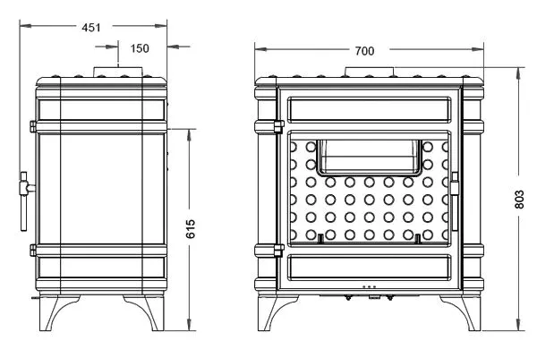 - średnica wylotu spalin: 150 mm