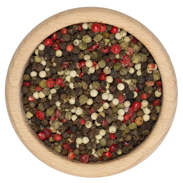 Pieprz kolorowy stanowi kompozycję różnych ziaren tej samej rośliny różniącej się barwą. W skład pieprzu kolorowego wchodzi: pieprz czarny, pieprz biały, pieprz zielony, pieprz czerwony (peruwiański) tworzą go owoce rośliny Schinus terebinthifolius. Połączenie czterech odmian pieprzu tworzy ciekawą kompozycję o różnorodnym stopniu intensywności aromatu. Całe ziarna używa się do sosów, zup, bulionów i marynat, natomiast pieprz zmielony ma szersze zastosowanie, praktycznie nieograniczone ponieważ jest znakomitym substytutem zwykłego pieprzu.