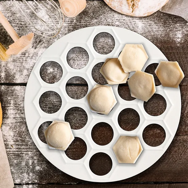 ✅ Uniwersalne zastosowanie - Sprawdzi się do przygotowania uszek, mini pierogów, ravioli, pielmieni z przeróżnym nadzieniem. Formę można wykorzystać także do ciasteczek i innych ciast, które przyjmują kolisty kształt.