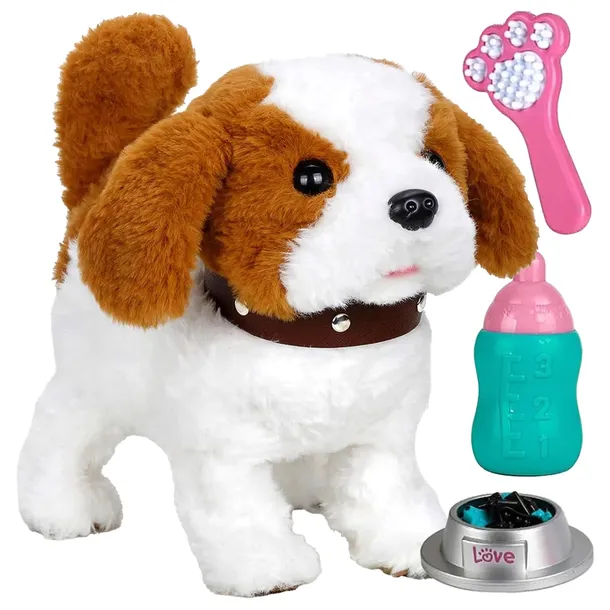 Piesek Interaktywny Reaguje na Głos Czesanie Picie z Butelki Chodzi Szczeka