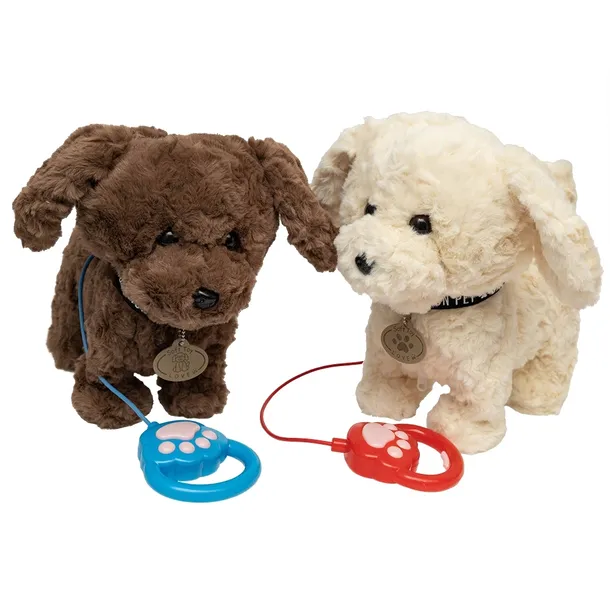 Zabawka jest dostępna w dwóch kolorach: beżowym oraz brązowym, co pozwala wybrać ulubioną wersję. Wystarczy nacisnąć przycisk na smyczy-pilocie w kształcie łapki psa, aby ruszył przed siebie przy dźwiękach wesołych piosenek.