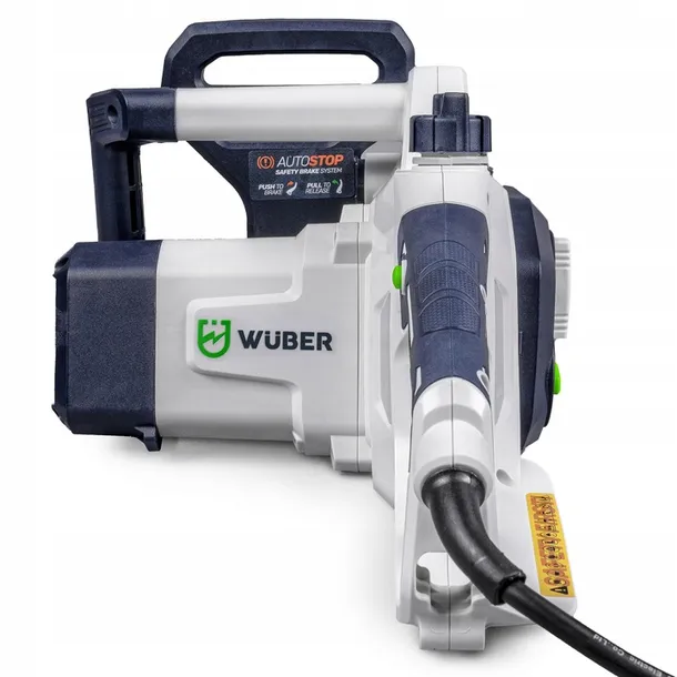 ✔️ Bezpieczeństwo dzięki hamulcowi natychmiastowego zatrzymania, antypoślizgowemu uchwytowi, blokadzie włącznika oraz niskiej wadze 4,5 kg, ułatwiającej obsługę.