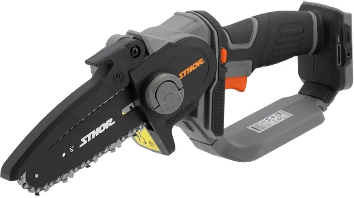 Mała poręczna pilarka akumulatorowa przeznaczona do cięcia drewna podczas prac ogrodniczych i dekarskich. Doskonale sprawdza się do szybkiego podcinania gałęzi drzew, krzewów, szczapek drewna, przecinania elementów architektury ogrodowej. Zasilana jest akumulatorem pasującym do serii urządzeń systemu 20 V Sthor. Antypoślizgowa rękojeść umożliwia pewny chwyt podczas pracy. Dodatkowy przycisk na obudowie zabezpiecza przed przypadkowym uruchomieniem.