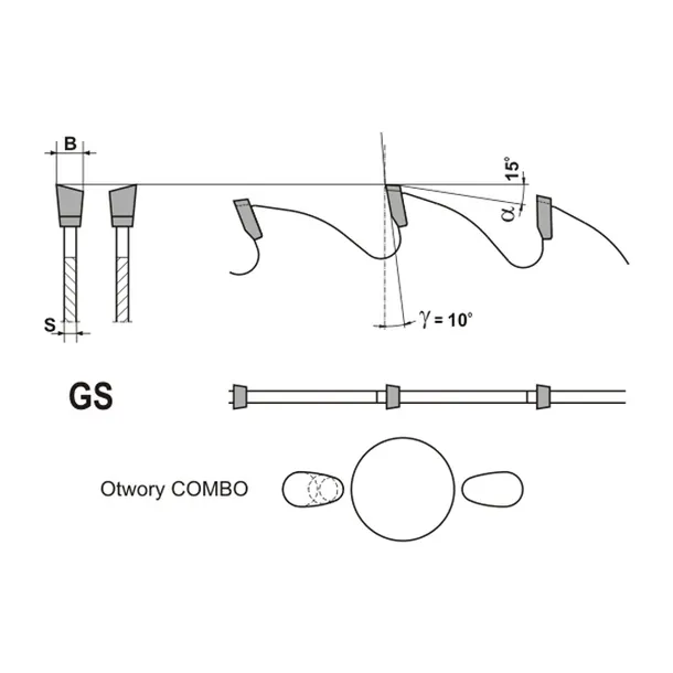 - odpowiednio dobrana geometria uzębienia oraz kształt płytki GS 10 (na przemian skośnie)