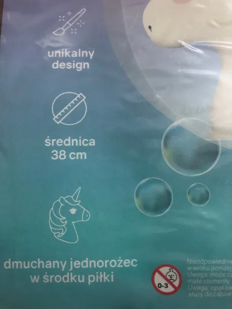 Jednorożca w środku piłki trzeba napompować osobno.