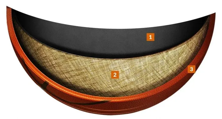 - Korpus i pokrycie – zapewniają strukturę wewnętrznym częściom. W piłkach wykonanych z najwyższej jakości gumy warstwa farby jest dodawana do korpusu, żeby zapewnić lepszy chwyt i wygląd.