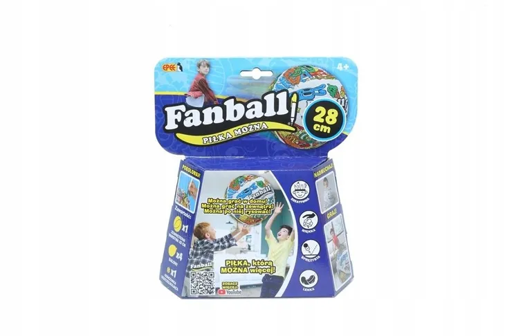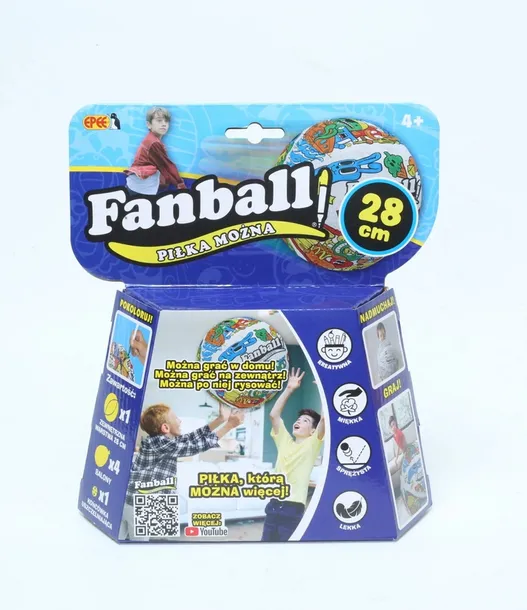Idealnie sprawdza się do rzucania i gry w pomieszczeniach dzięki opatentowanej technologii amortyzuje wszystkie uderzenia przy zabawie. Piłkę Fanball można pomalować dowolnymi flamastrami. Kolory nie zacierają się i pozostają żywe.