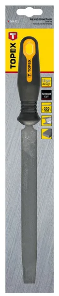 Pilnik do metalu TOPEX (nr ref. 06A721) o długości 200 mm i płaskim przekroju. Przeznaczony do szlifowania metalu. Wykonany z wysokiej jakości stali T12. Ergonomiczny uchwyt pokryty antypoślizgowym materiałem zapewnia wygodę i bezpieczeństwo podczas pracy. Marka TOPEX skierowana jest do majsterkowiczów.