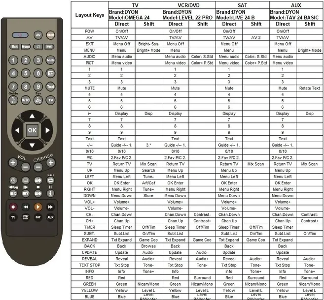 Ponieważ pilot może mieć wiele przycisków, w pilocie zastępczym znajdziesz Shift przycisk, który umożliwia podwojenie liczby przycisków na pilocie. Najczęstsze funkcje wykonuje się zwykle za pomocą bezpośredniego wciśnięcia (poprzez naciśnięcie jednego przycisku), podczas gdy mniej typowe funkcje wykonuje się zwykle za pomocą przycisku Shift, a następnie innego przycisku.